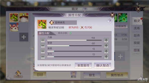 如果选择的是法术攻击型精灵,则需要主加灵力属性和敏捷属性。灵力属性可以提高精灵的伤害,并且对羽灵有一定的灵力加成,而敏捷属性也可以缩短精灵的技能CD,使得其输出能力增强。
