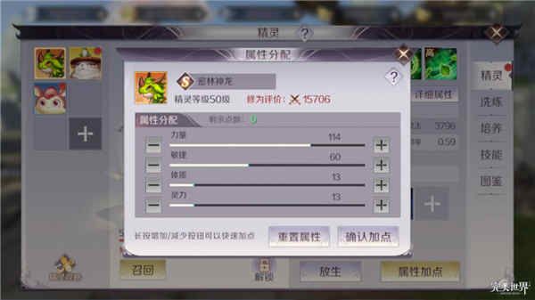 对于防御型和治疗型精灵,加点时应当主加体质和敏捷属性。体质属性可以提高精灵的治疗强度,并且可以对主人有一定的体质加成。敏捷属性则可以提高精灵的攻击频率,并对主人有一定的敏捷加成,更重要的是提高敏捷属性可以降低精灵的技能CD,从而使得主人能够在短时间内得到更多的辅助效果。