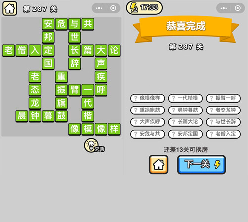 以上就是由iefans小编为大家带来的成语升官记第287关答案介绍。希望能帮助到大家,祝大家游戏愉快!