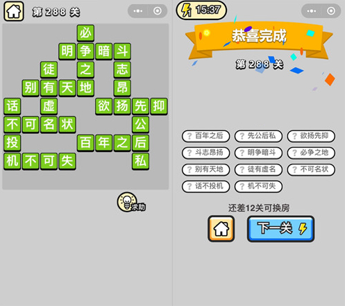 以上就是由iefans小编为大家带来的成语升官记第288关答案介绍。希望能帮助到大家,祝大家游戏愉快!