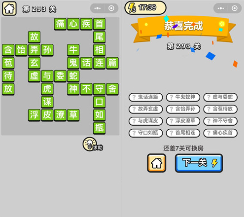 以上就是由iefans小编为大家带来的成语升官记第293关答案介绍。希望能帮助到大家,祝大家游戏愉快!