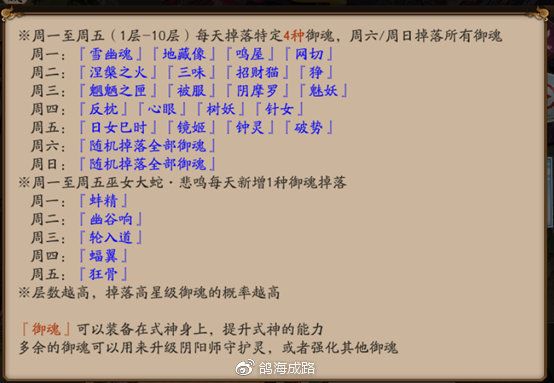 例如今天,巫女大蛇在魂十魍魉、被服、阴谋罗、魅妖的基础上新增了轮入道掉落。