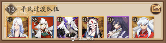 如果暂时没有炼狱茨木或玉藻前,也可以选用小天狗作为第一输出,后面补上其他针女系收尾式神,例如:山兔+小天狗+弈+犬夜叉+鬼切。