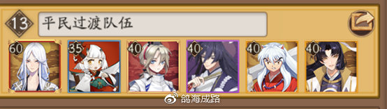 平民过渡队伍:山兔+炼狱茨木+玉藻前+双针女单体,所有输出速度低于晴明吃星。