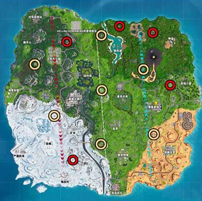流浪的球全地图刷新点:红圈为探险哨站,黄圈为海盗营地