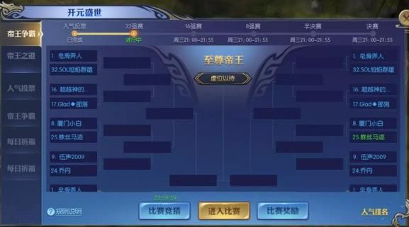 3、如果等待时间结束,选手不在备战场景,将被视为放弃比赛,对手轮空的选手不受此影响(大家一定要记得按时参赛哦(〃'▽'〃)!)