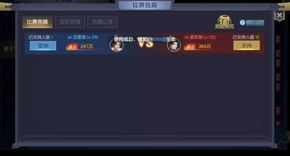 在正式比赛阶段,各位侠士可对每一场比赛的进行竞猜: