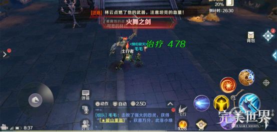 (火舞之剑)BOSS会点燃他的武器释放的技能,技能伤害高,同时附带灼伤效果,辅助人员要时刻注意观察坦克人员的血量情况,保障坦克人员血量至少80%以上!