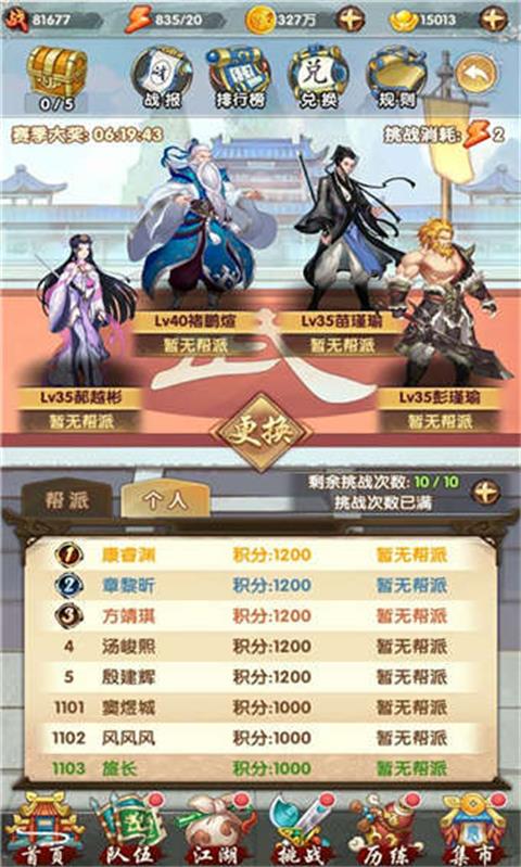 武林大会--轮回赛制,最强王者:武林大会是积分制PVP系统,玩家只要到达28级即可参与到武林大会当中,在这里玩家可以与对手展开积分比拼,每赢一场即可获得积分,而战败则会扣除一定积分,即使自身战力略逊同组对手,也可以通过多劳多得获得比对手更高的积分。该赛季比赛结束后会根据玩家获得的积分,决定排名等级,排名高者将有机会获得神将和主角套装。在这里只要勇于完成一定次数的挑战,也会获得保底奖励,如此厚道的比赛怎可错过。