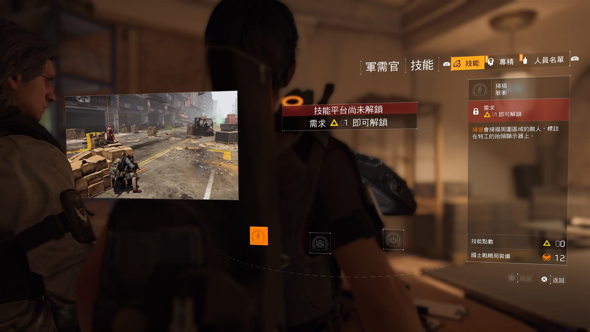 可以扫描周围区域的敌人,并标注在特工的抬头显示器上。