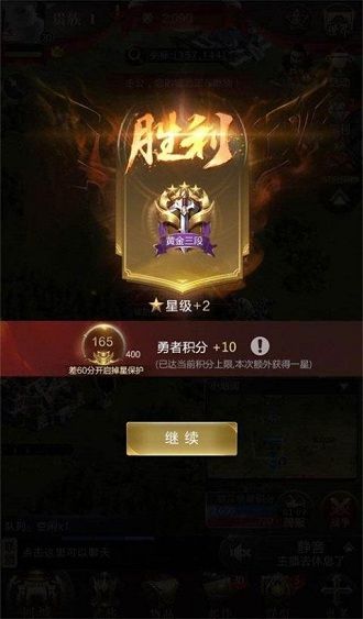 分成了7个段位,和王者荣耀一样的,分成了青铜、白银、黄金、白金、钻石、星耀和最强王者,其中每个段位都有三个小段位,而且游戏还设置了不同的星星数量,提升星星数量就可以提升段位。获胜可以加一星,失败可以减一星,而且还有勇者积分机制,玩家表现好可以多加分,达到一定积分就可以变成一颗星星。