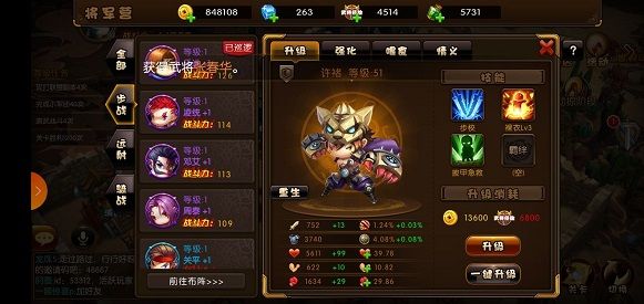武将分为输出和功能性两类,根据阵容可以带3、4个有三种兵种的核心输出将领,一般三个就够了。