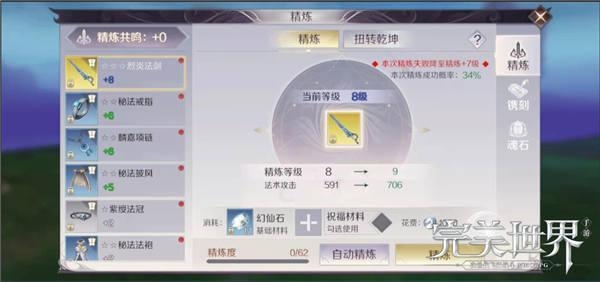 第一精炼装备:人物等级的提升能够带来整体属性的提升,武器等级的提升也同样如此,这个时候就需要玩家进行精炼来提升武器等级。在这其中也需要消耗一定的幻仙石,当然也是存在着一定的失败率。
