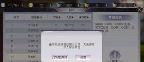 信用分并不是游戏内部所具有的机制,这个有腾讯平台所决定,根据玩家的账号安全、守约和消费信息等会做一个综合的评估,其中最低300分,最高850分,如果大家的账号频繁的出现问题就会出现信用分下降的情况。
