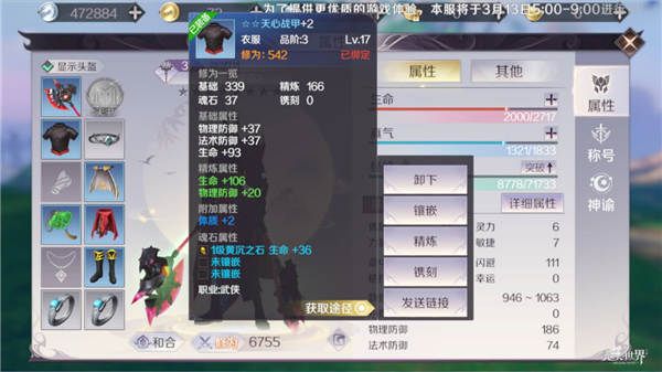 输出的问题解决了,再就是防御力了,所以战甲、鞋子和护腿的强化也不能落下;战甲在这三件中自然是最先强化,有生命值和物理防御加成,护腿增加生命值的同时也增加物理防御力,鞋子增加生命值和法防,前期的BOSS和怪物主要都是物理输出,所以正确的强化顺序是战甲-护腿-鞋子。