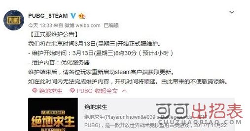 绝地求生3月13日正式服维护公告: