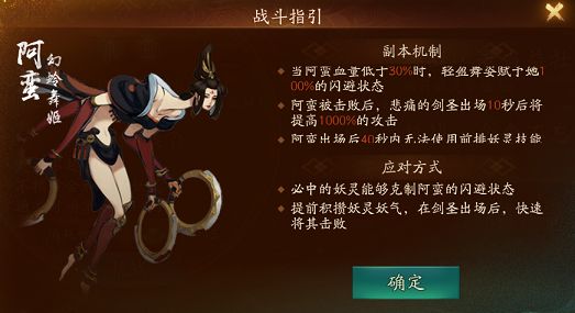 当阿蛮血量到了30%时会增加100%的闪避状态,该状态下BOSS可以免受降妖师的攻击伤害,并且没有攻击必中效果的妖灵技能伤害也无效。