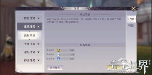 第一主线任务:是玩家必须完成的任务,也是引导游戏剧情走向的关键。主线任务的奖励是比较丰厚的,并且可持续性非常强,玩家可以不断地完成任务获得奖励。