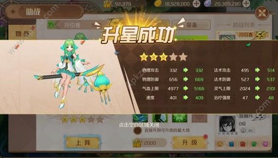助战升星,消耗碎片进行升星,升星后助战每个属性将大幅度提升。达到3星时,将获得全新的助战技能。