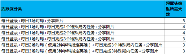 每日对局3场,最快3天即可获得大奖,每日对局1场,5天可获得大奖;不同活跃度的玩家获奖进度可参考下表:
