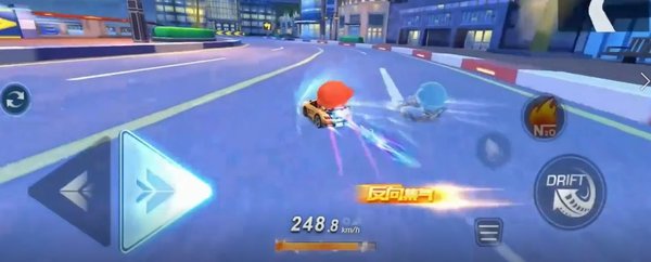 开局先利用小漂连喷提速,注意在漂移时把控好车头,尽量往右边靠;然后使用拖漂进行集气。这里如果一开始不使用小漂的话,很有可能拖漂后集气槽无法变满,从而无法使用氮气加速。