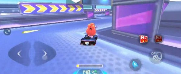 特别是这个Z字弯,特别考验对方向的掌握,小编这里建议大家使用反方向键拉车头,不然很容易撞墙。并且在这个赛道还特别考验玩家对于反向集气的掌握,小编这里建议大家在车身转向到八九十度的时候,再反向漂移,按着不松,基本都能触发。