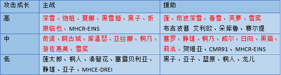 至于那些角色攻击高嘛,给大家一张图让大家参考一下。这类队伍也不需要什么精确计算出手顺序了,直接怼就行了。队员组成就是谁攻击力高就放谁。