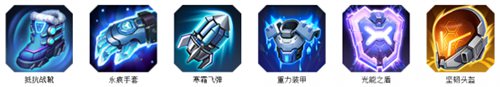 抵抗战靴+永恒手套+寒霜飞弹+重力装甲+光能之盾+坚韧头盔