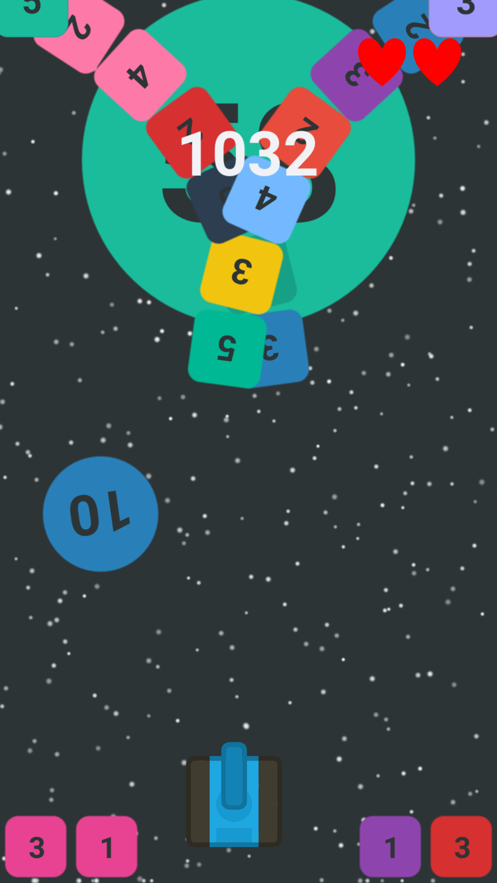 5、点击屏幕发射子弹,清除数字砖块会得分,左右倾斜控制方向,