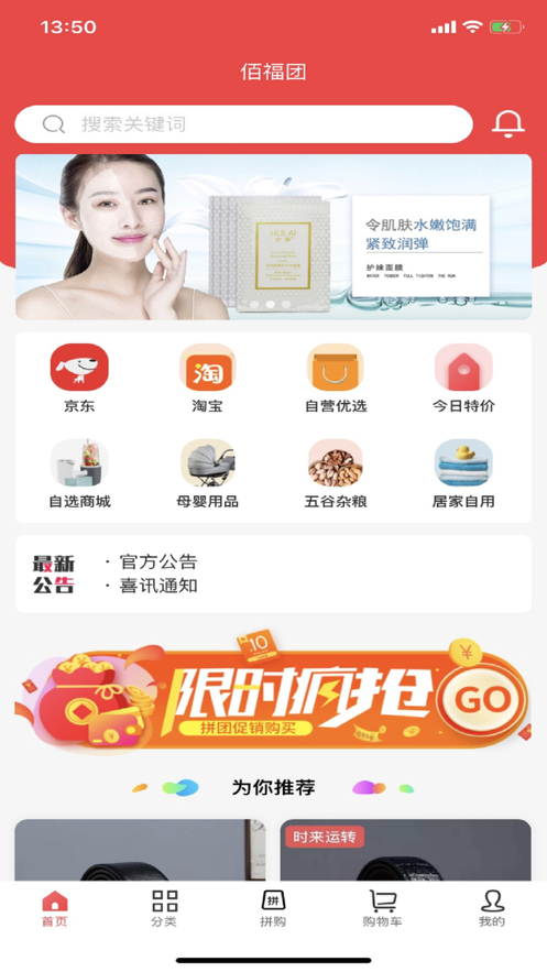 佰福团app能够为用户带来十分便利且周到的移动购物平台,这里包含了母婴、自选商城、五谷杂粮、居家自用等众多类型的商品。能够满足不同用户的购物需求,让你享受快乐的购物体验。