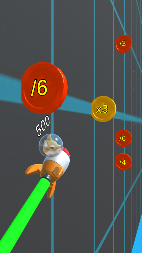 1.玩家根据手指尖来滚动显示屏为此来操纵火箭飞行轨迹