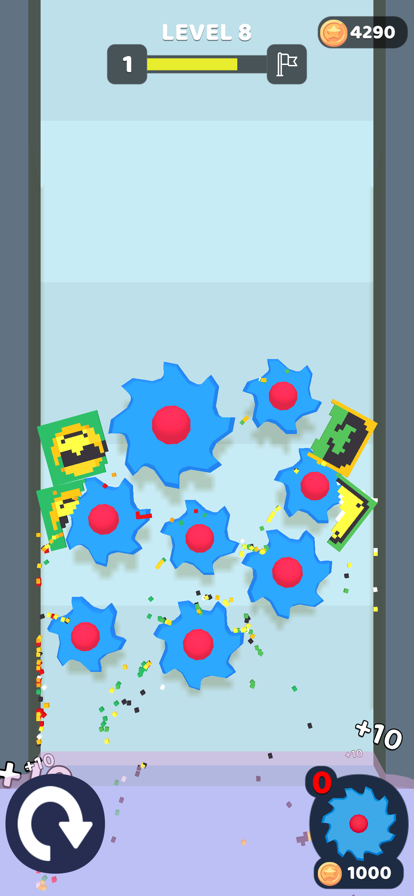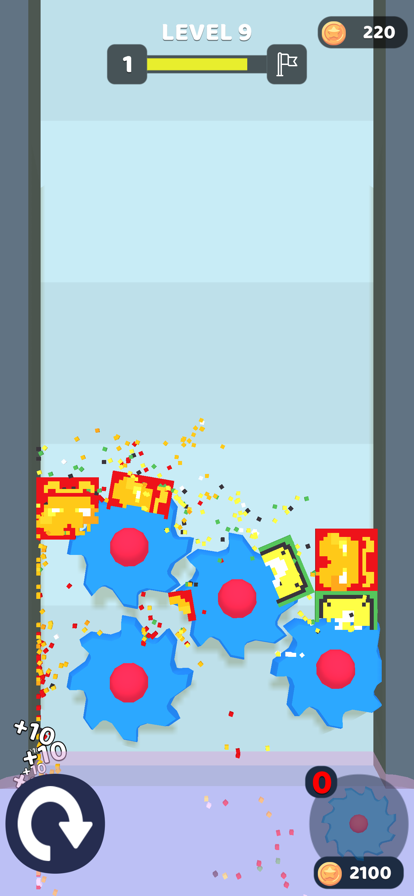 在Grind Master这款游戏中有一个立方体,用户朋友在闯关时需要想办法合并这里的齿轮,让这些齿轮运转起来,然后就能磨碎这些立方体了。在游戏中还有海量的后续关卡,喜欢的就来试试看吧。