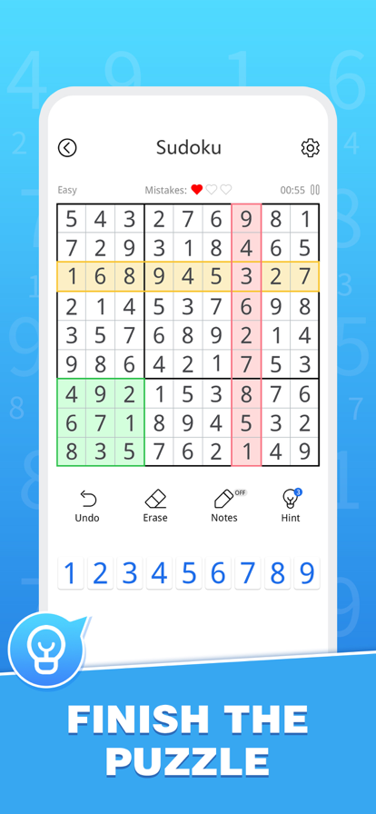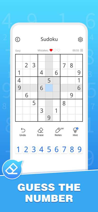 The Sudoku Master: Classic Puzzle拥有许多精心设计的谜题,包括简单、普通、困难等5种不同模式。
