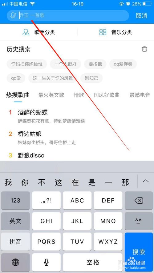 2、接着在主界面中搜索栏中输入想要的添加到歌曲进行搜索
