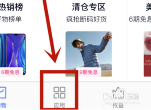 1、我们可以先下载分期乐软件,下载好之后在打开主页面,点击《应用》按钮。