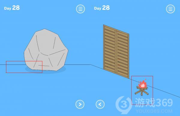 将火堆中的三个木棍捡起来,随后都放在石头的左下角,推动石头。在石头的右边就有游戏机了