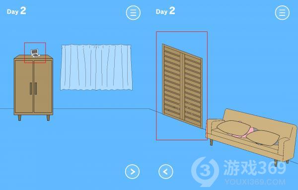 打开右侧的门,取出凳子。将凳子放在衣柜的位置,点击衣柜上方的游戏机就可以了