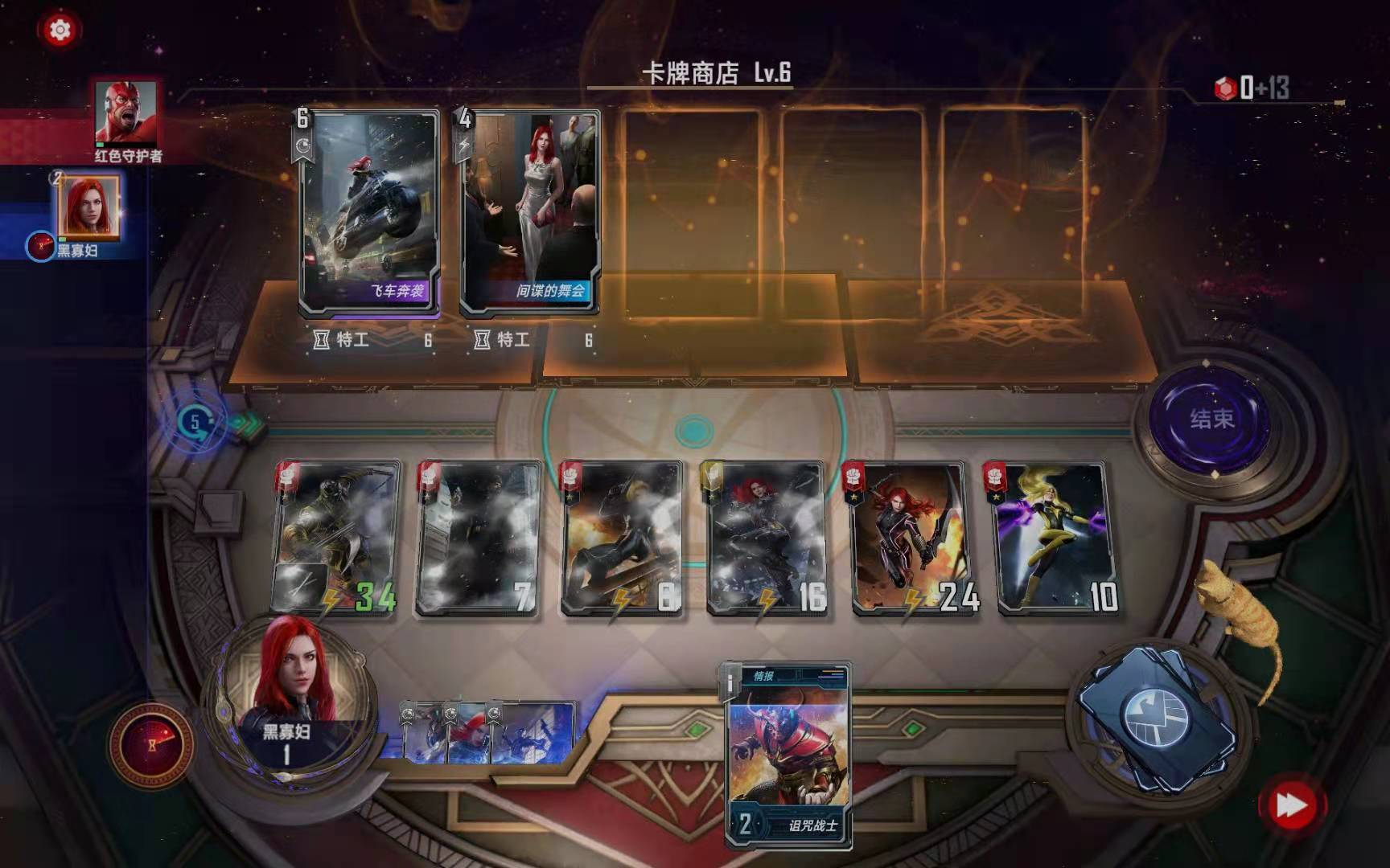第三小节:购买黑寡妇(恐惧之源),购买暗星对“绿浩克”使用二星情报,按照下图摆放: