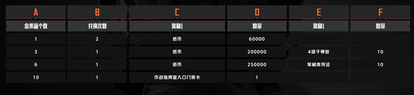 单人参与活动时危险系数较高,先锋们可邀请好友组队助力,拿到金条箱后快速确定撤离点,掩护运输人员撤退。成功将金条箱带出后需要在活动时间内兑换,不要错过丰厚的奖励回报哦~