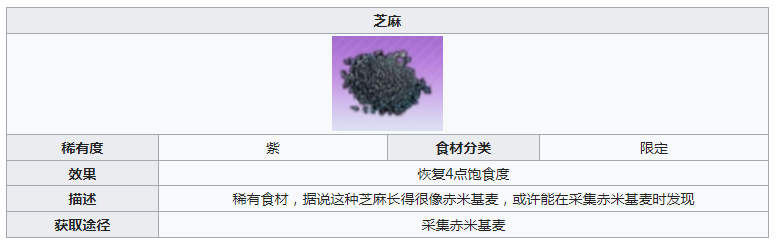 稀有食材,据说这种芝麻长得很像赤米基麦,或许能在采集赤米基麦时发现