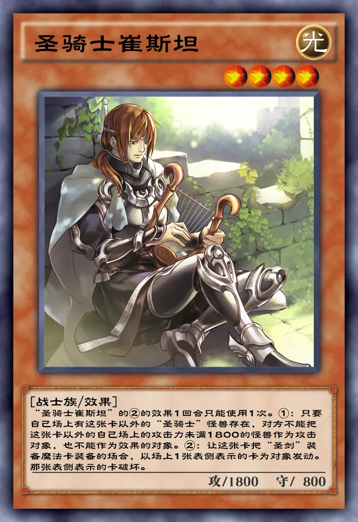 此卡以外的「圣骑士」怪兽在场上存在期间,对方不能把这张卡以外的自己场上的攻击力未满1800的怪兽作为攻击、效果对象。