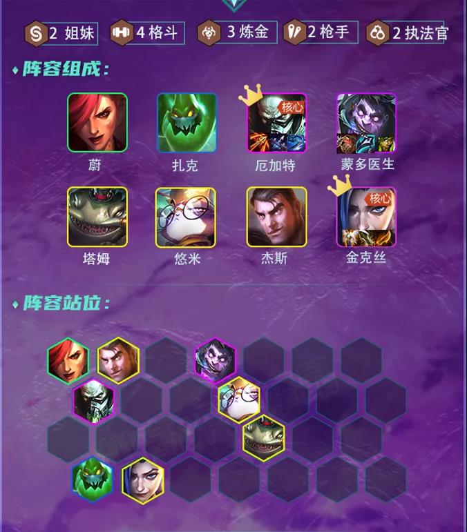 大部分都能用,最优格斗家/炼金之心/魂,不屑耸肩,神枪手,并肩作战、短兵之力、泰坦之劲等。特别是不屑耸肩这版本变为白银品质,拿到的概率更高,阵容坦度与续航也会进一步提升。