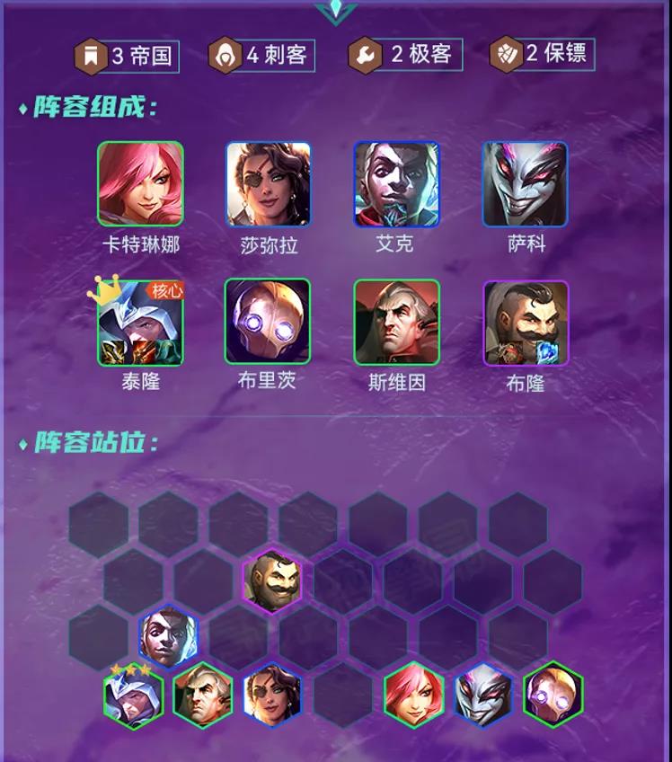 出装方面略有改动,男刀现在无尽+火炮+水银最优。但这两套阵容缺点也比较明显均是比较吃站位的阵容,需要时刻看对局对手情况,更换棋子位置进行针对。