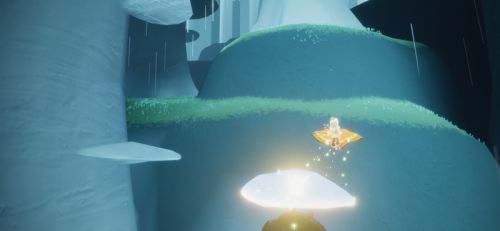 2、当有光之子靠近的时候,荧光小菇会变成淡白色,还能助光之子飞向高处;