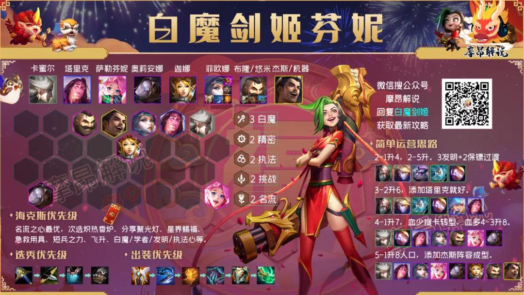 阵容羁绊:3白魔 2静谧 2执法 2挑战 2名流