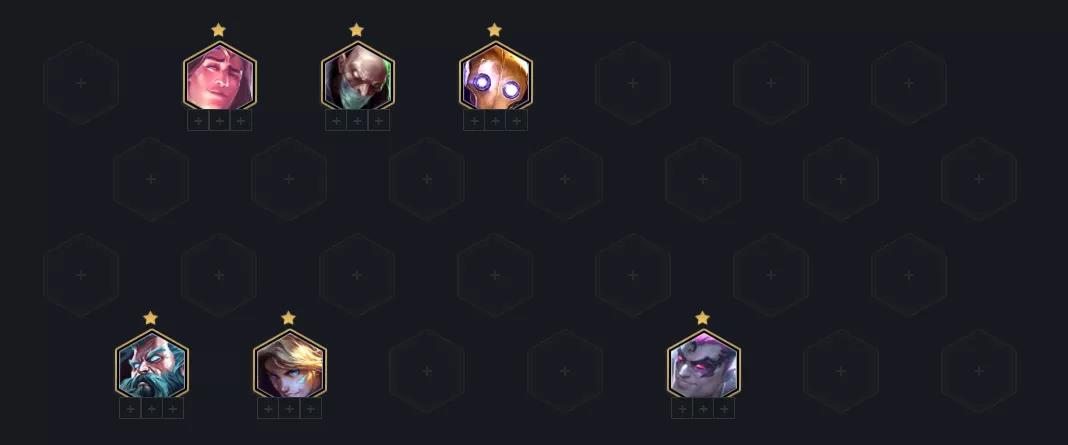 3阶段:3-2升级6人口,如果这时候棋子较差需要小搜卡提升阵容质量,保证血量,装备也方面尽量成型,特别是巨杀、正义这类任何阵容均可用的装备,在装备上有巨杀、正义后可考虑找鬼书与复活甲。阵容方面砍情况添加棋子,保证能稳血就好,如用极客发明家过渡可考虑上塔里克。