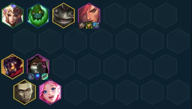 出门首拿眼泪或大棒,优先做蓝buff或鬼书,前期飞机、卢锡安、玛尔扎哈谁先来谁就当主C,这三张牌的机制都是能完美先带装打工的,前排的话最好就用低费格斗,有转职的话后期还能用到死。