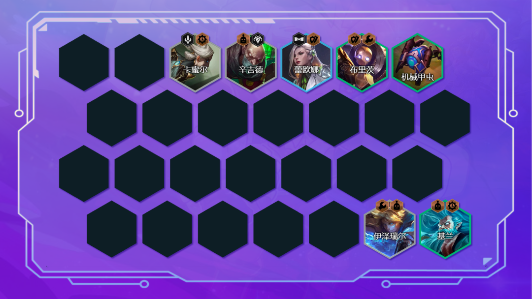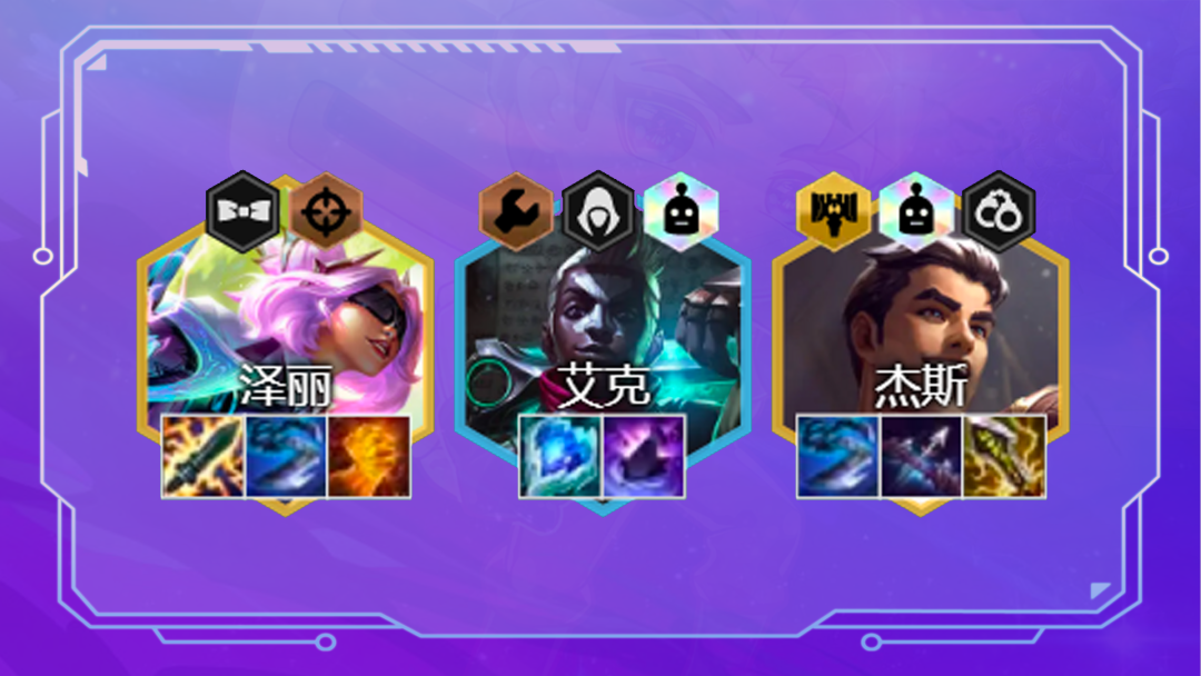 阵容属于后期找杰斯的节奏,因此拉8拉9人口非常重要,杰斯是开7发明的重点。前期尽可能的走连胜,可以选择在中期跳到8人口抢先找杰斯开出7发明龙。