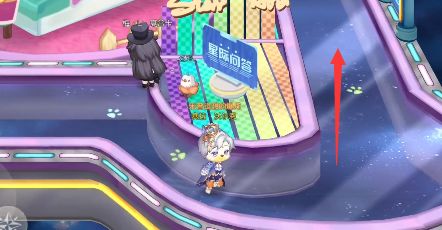 1、首先我们先向右方向移动,一直走到星际问答区域,注意路上有没有蓝名称的NPC。