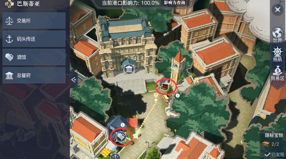 黎明之海的巴斯蒂亚隐秘宝物一共有2个,大概位置查看下面地图显示。
